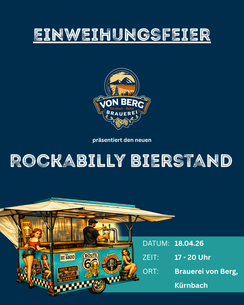 Save the Date! 🍺🔥 Am 18.04.26 ist es so weit:Wir weihen unseren neuen Rockabilly-Bierstand ein! Von 17 bis 20 Uhr seid ihr herzlich eingeladen, bei uns in der Brauerei von Berg in Kürnbach vorbeizuschauen, mit uns anzustoßen und den neuen Bierstand live zu erleben. Ein bisschen Retro, viel Herzblut und natürlich bestes Bier vom Fass […]